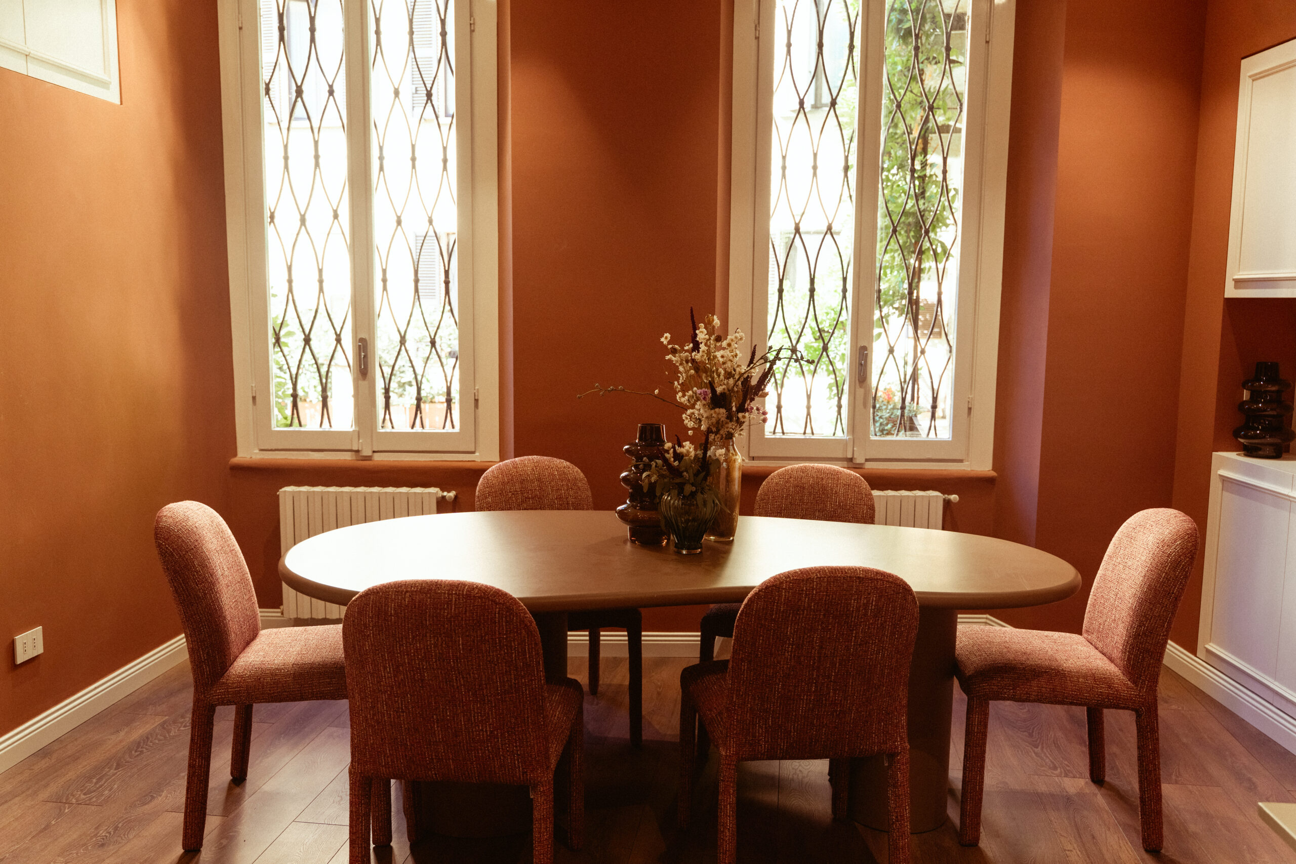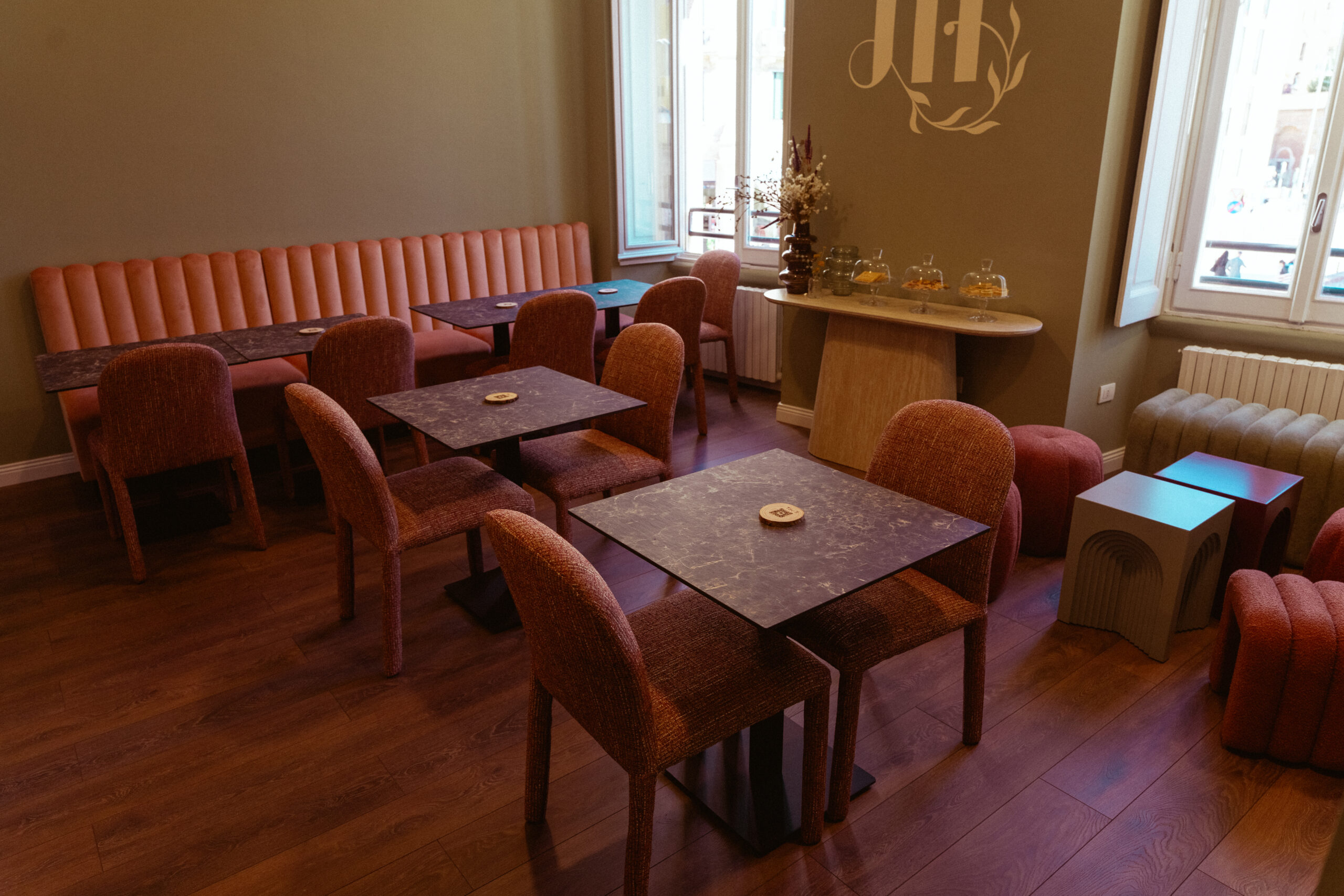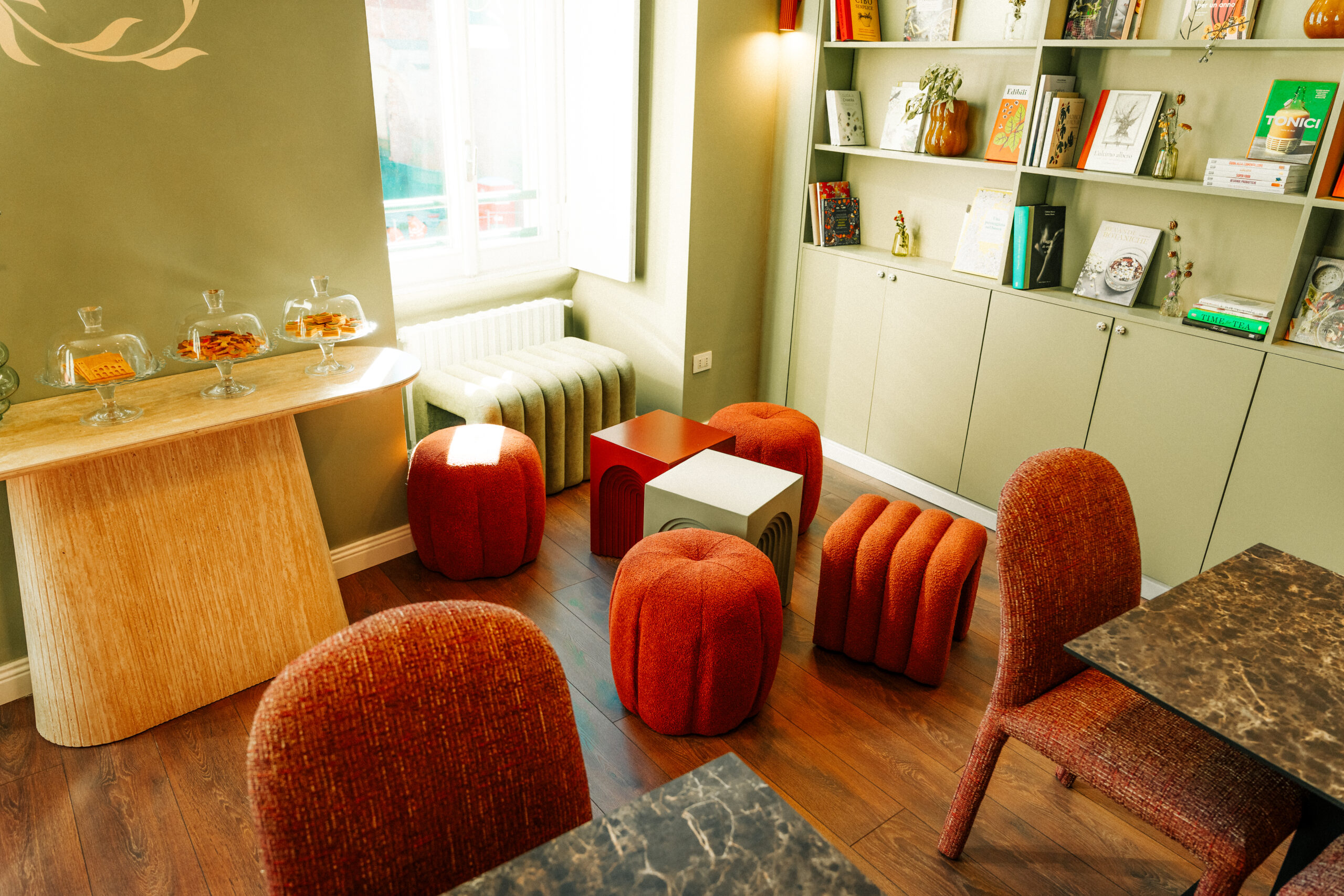 Al piano superiore, l’atmosfera si fa più intima e raccolta: tre sale  — la Sala dei Dolci, la Sala dei Tè e la Sala Eventi — vi aspettano per vivere il rito del tè, un pranzo mindful eating o una dolce pausa fatta di calma e piacere. Ogni dettaglio è pensato per farvi godere il momento: materiali naturali, tonalità calde e la sensazione di un rifugio contemporaneo dove i protagonisti siete voi e il vostro tempo.